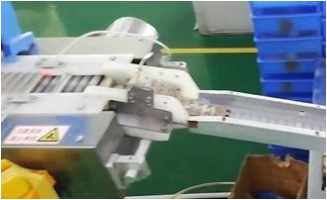 電池經清洗涂油干燥后,躺著出料,出料高度 780 MM,正負 30MM 可調,出料由下端設備負責對接(電池自動清洗機把電池經過橋板輸出,如下圖)。 本電池清洗機,人工面對操作面,是右進左出,電池正極,也就是電池帽一頭朝向里面, 電池從左邊出料。